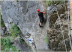 La « Via Ferrata », en français « chemin en fer », vous permet de prendrerapidement de la hauteur tout en testant votre force et votre endurance. Il existe une grande diversité dans les « via ferrata », certaines sont en plaine, d’autresen montagne, certaines sont très verticales et d’autres plus horizontales. Attention, cette activité n’est pas sans danger et l’encadrement par unprofessionnel, qui vous dispensera des informations sur le matériel ou qui vousassurera dans des passages plus techniques, s’avère souvent très utile. La via-ferrata est choisie en fonction de vos intérêts et de votre niveau. Via Farinetta, Saillon/LeytronCette magnifique Via Ferrata, construite en 2011, vous attend dans les gorges de Salentse. Avec ces 300 mètres de dénivelé et des cotations allant de Peu Difficile(PD) à Assez Difficile (AD), 2 à 3 heures de grimpe intense sont garanties!